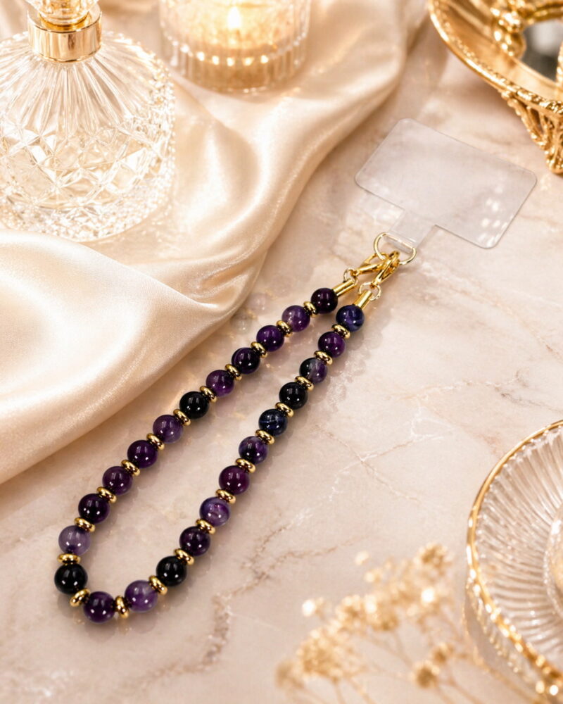 „Amethysta – Handyband der Intuition“ vereint edle Natursteinperlen mit einer bewusst gesetzten energetischen Ausrichtung und wird so zu einem stilvollen Begleiter mit tiefer Bedeutung.
