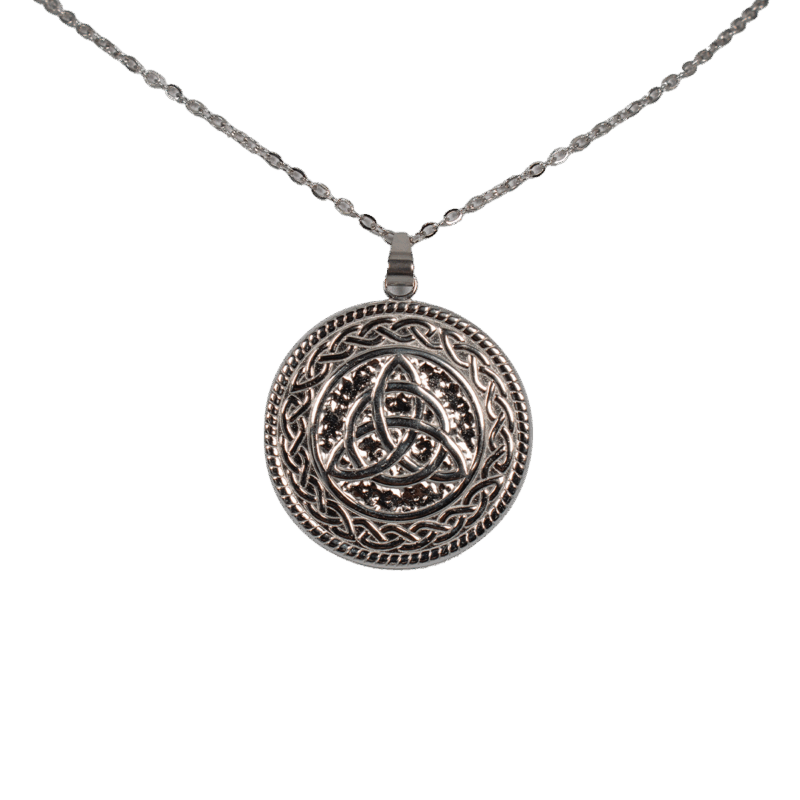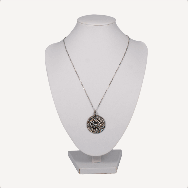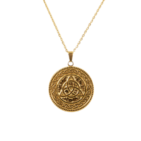 Dieses Amulett ist mehr als nur ein Schmuckstück – es ist ein mächtiger Begleiter auf deinem Seelenweg. Der heilige Dreifaltigkeitsknoten, eingebettet in kunstvoll geprägtes Gold, trägt die Energie uralter Weisheit und göttlicher Harmonie.