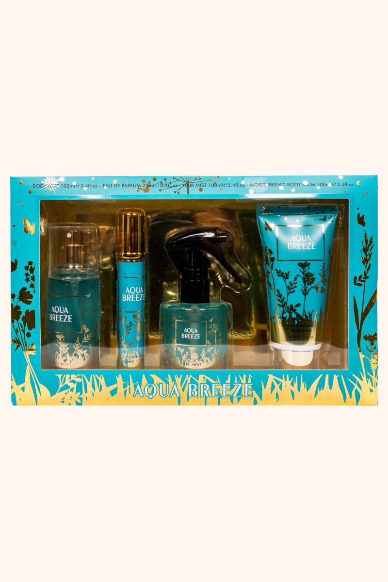 Das Aqua Breeze – Meereszauber 4 teilige Pflegeset wirkt wie eine sanfte Meeresbrise, die klärt, belebt und Dich wieder in Deine natürliche Balance bringt.