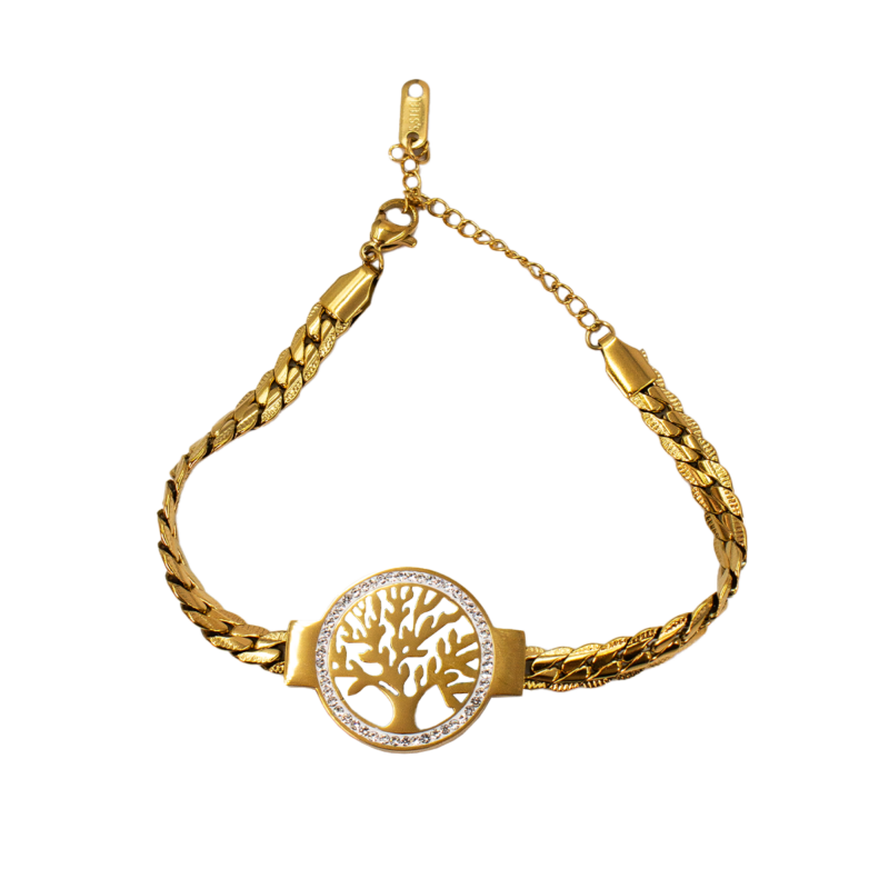 Der „Baumkraft“-Schmuck ist mehr als nur ein Accessoire – er symbolisiert die Wurzeln des Lebens, das Wachstum und die spirituelle Kraft, die in dir steckt. Die goldene Farbe strahlt Wärme und Positivität aus, während die Strasssteine Licht und Klarheit bringen. Es ist ein Zeichen der inneren Stärke und des Gleichgewichts, das dich auf deinem Weg begleitet.