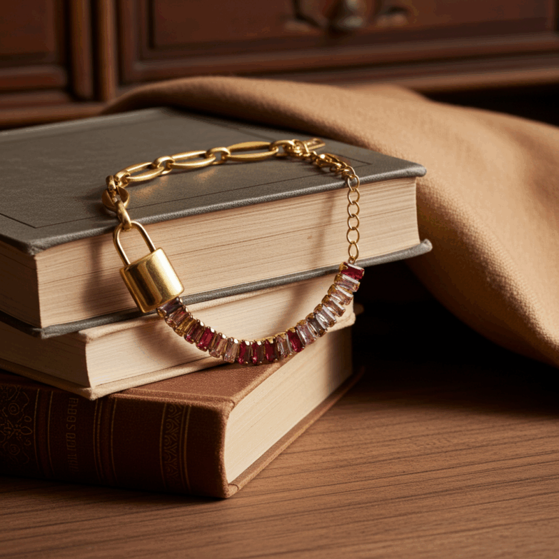 Dieses Armband ist mehr als nur ein Schmuckstück – es ist ein Symbol deiner Seele, ein leuchtendes Versprechen an dein wahres Selbst. Das Armband Seelenschloss verbindet kraftvolle Edelstahl-Glieder mit zarten, funkelnden Strass-Tennisketten in Regenbogenfarben – ein Ausdruck von Stärke, Eleganz und gelebter Emotion. Der goldene Schloss-Anhänger steht für Schutz, Vertrauen und die Verbundenheit mit deiner inneren Wahrheit.
