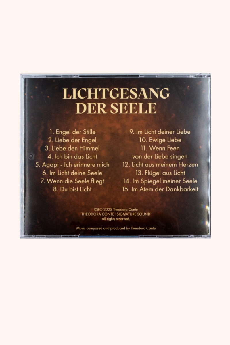 Es gibt Augenblicke, in denen Worte wie von selbst aus der Tiefe des Herzens aufsteigen… Worte, die Trost spenden, Hoffnung schenken und das Licht in uns berühren. Aus genau dieser inneren Quelle heraus ist die CD „Lichtgesang der Seele“ entstanden – als ein liebevoll erschaffenes Herzensprojekt voller Gefühl und Hingabe.