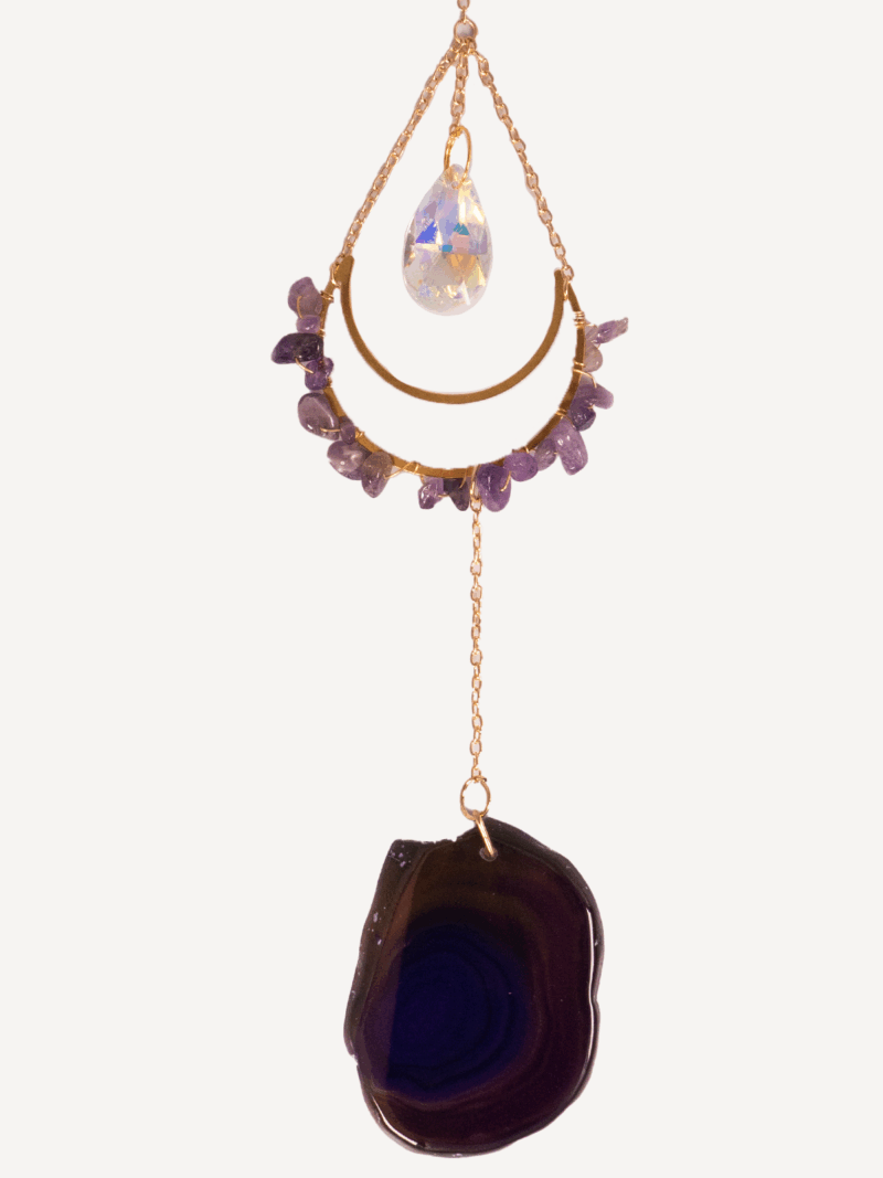 Der Crystal Lichtfänger vereint die Symbolkraft des Mondes mit der Schönheit von Edelsteinen und Achat. Der zarte Halbmond, gefüllt mit funkelnden Steinsplittern, erinnert dich daran, deine Träume zu leben und deiner inneren Stimme zu folgen.