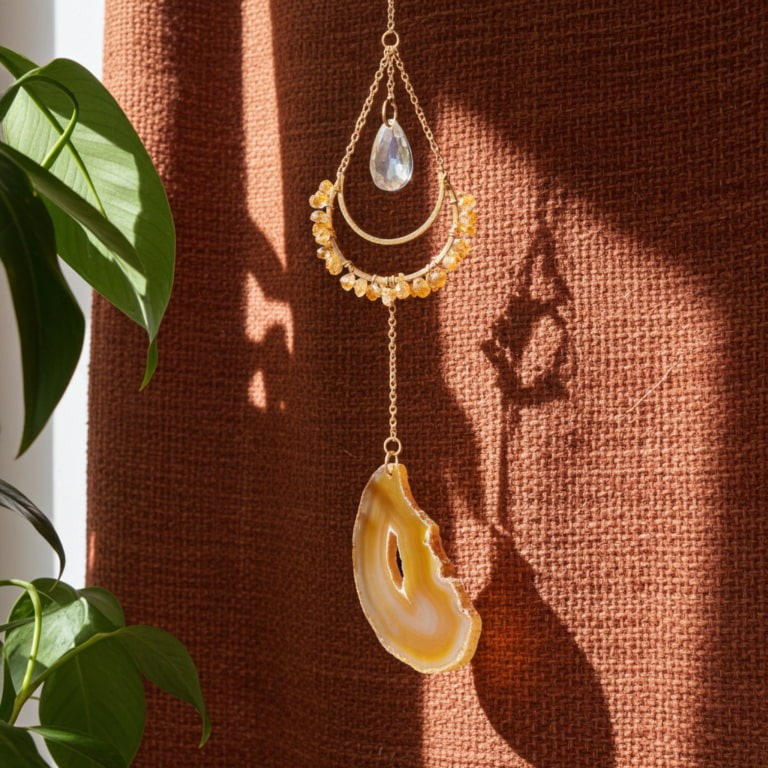Der Crystal Lichtfänger mit Citrin strahlt Wärme und Lebensfreude aus. Er erinnert dich an deine innere Kraft und öffnet dir den Weg zu neuer Leichtigkeit und Fülle.