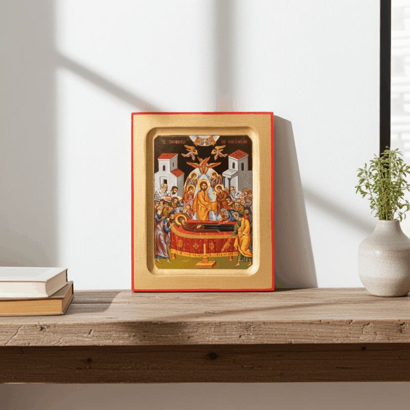 Die Kirche feiert die Aufnahme Mariens in den Himmel als großes Fest der Hoffnung und des Lichts. Mit dieser Ikone bringst Du nicht einfach ein Kunstwerk in Dein Zuhause, sondern ein lebendiges Fest, das Deine Seele neu belebt und Deine Sinne für das Heilige sensibilisiert.