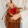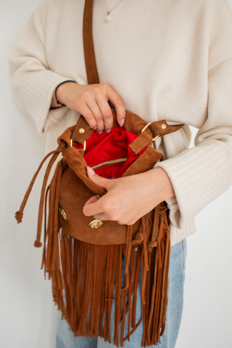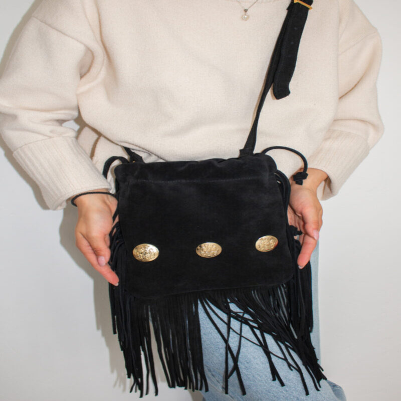 Gefertigt aus weichem Wildleder, veredelt mit goldenen Symbolen, trägt sie eine tiefe energetische Codierung in sich: