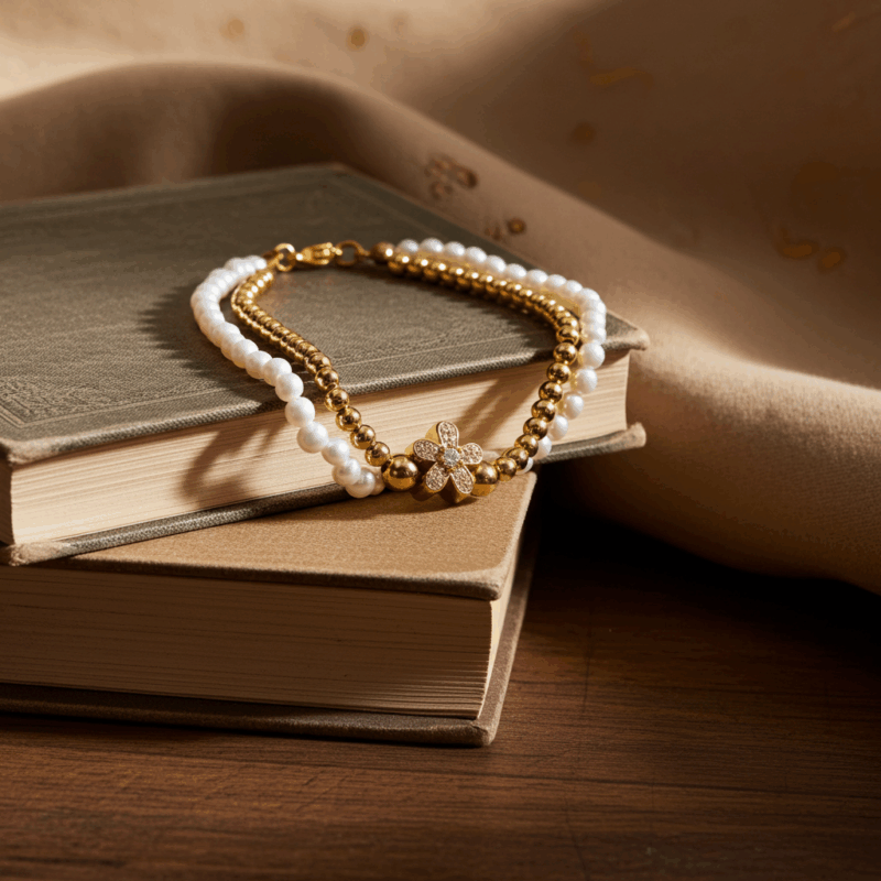 Sanft wie ein Sonnenstrahl, edel wie flüssiges Gold – das Armband „Goldene Aura“ umhüllt dich mit einer besonderen Energie der Eleganz und Erleuchtung. Die feinen Perlen symbolisieren Reinheit und innere Harmonie, während das schimmernde Gold sanfte Wärme und erhabene Kraft ausstrahlt.