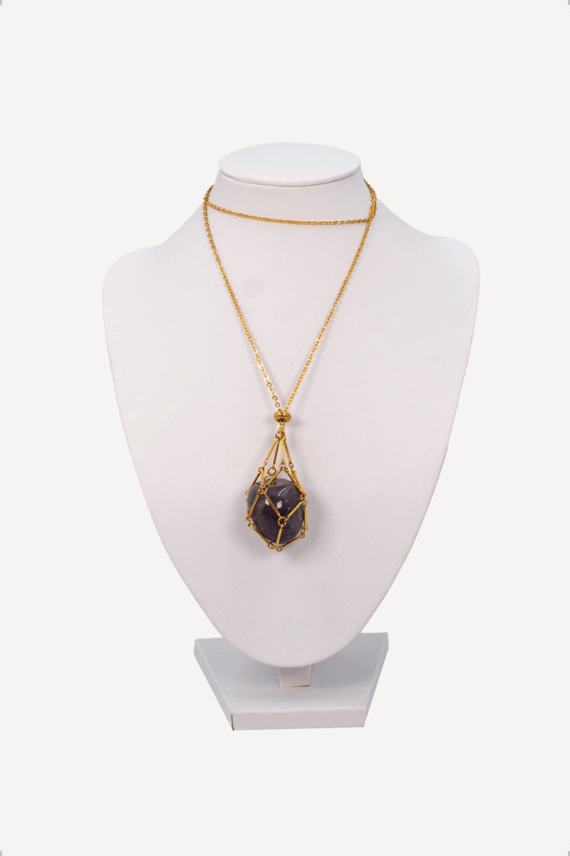 Das Netz – einst Symbol für das Tragen, Bewahren und Beschützen – umarmt den Amethyst wie ein himmlischer Kokon. Es steht für Halt, für das Eingebundensein in etwas Größeres, für das Getragen-Werden im Strom des Lebens. So wird dieser Anhänger zu einem Begleiter, der dich daran erinnert: Du bist gehalten. Du bist geschützt.