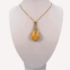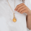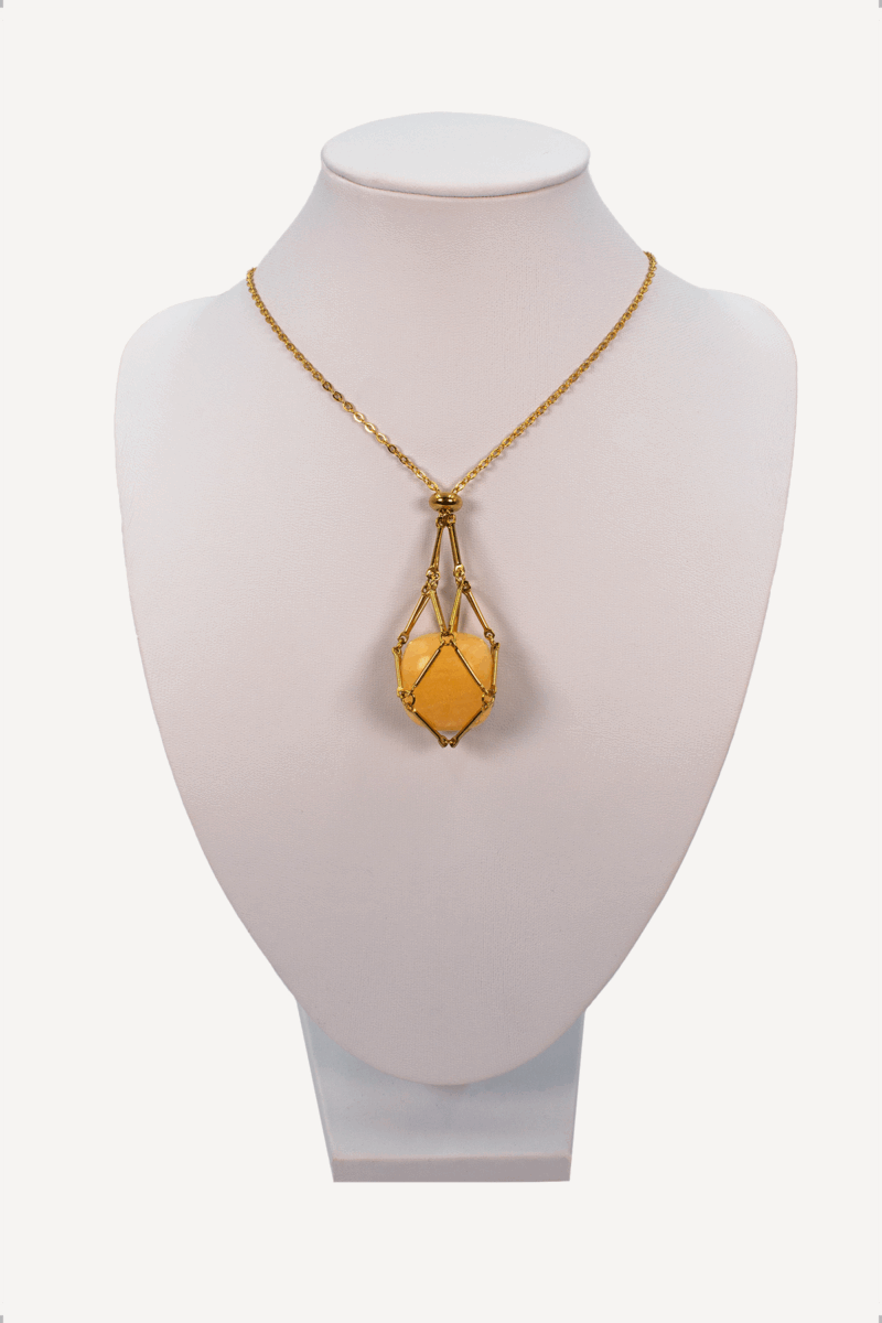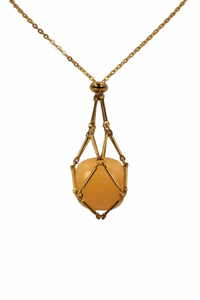 Wie eine leuchtende Seele, sanft eingebettet in ein schützendes Geflecht aus Licht – so ruht die kraftvolle Topas-Jade in diesem außergewöhnlichen Schmuckstück.