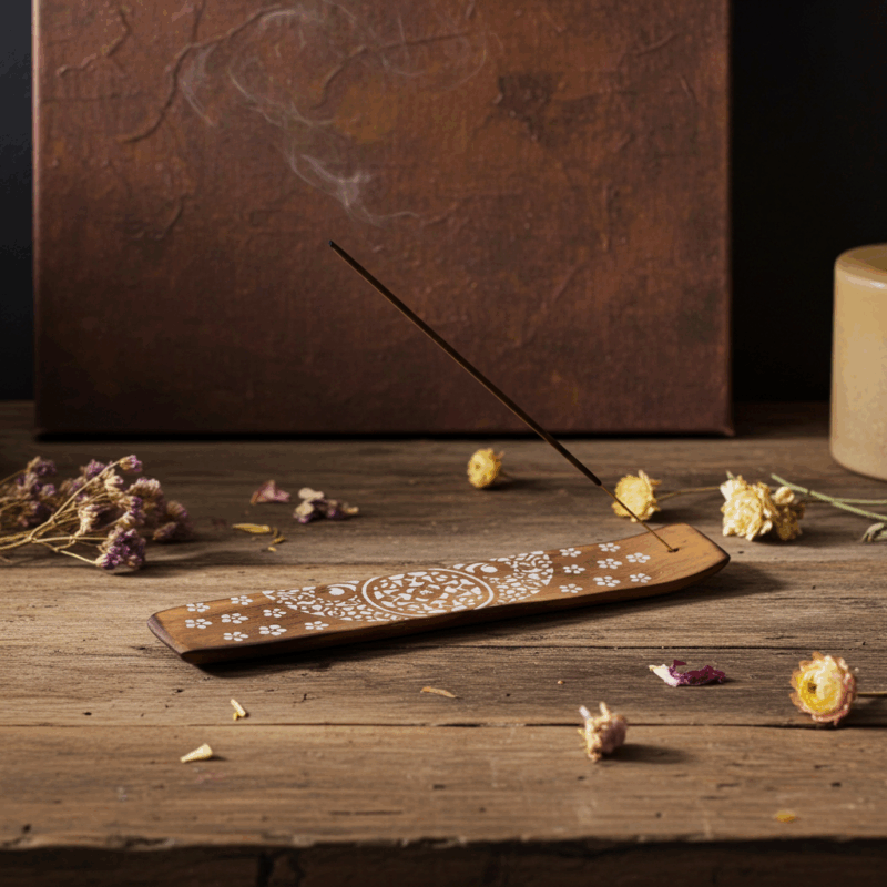 Gefertigt aus warmem, lebendigem Mangoholz, trägt es die Energie der Erde in sich. Wenn der duftende Rauch aufsteigt, umhüllt er dich mit seiner heiligen Präsenz. Er löst Schwere, klärt deine Gedanken und öffnet dein Herz für das Licht. Ein Moment, in dem Zeit nicht mehr zählt – nur du, dein Atem und die stille Magie des Räucherns.