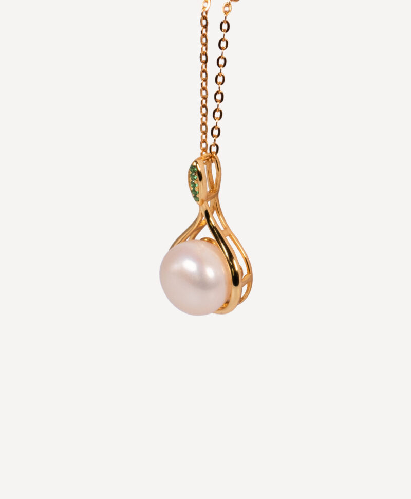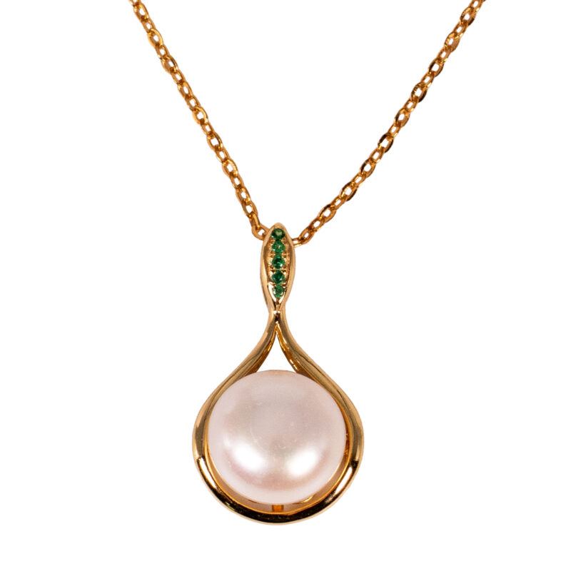 Material: 925 Sterlingsilber goldfarben, Süßwasserperle, grüner Zirkonia