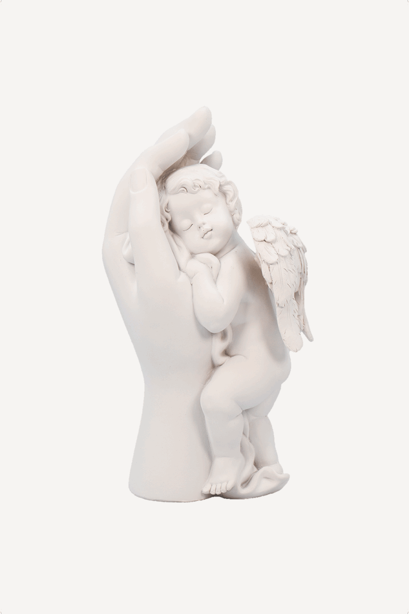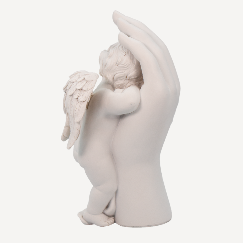 Es gibt Momente im Leben, in denen wir uns nach Trost, Liebe und einem Gefühl der Geborgenheit sehnen. Die Skulptur „Himmlische Geborgenheit“ ist ein strahlendes Symbol für den ewigen Schutz der Engel. Sanft gebettet in die Hand des Göttlichen, ruht der kleine Engel in völliger Hingabe und Vertrauen – ein berührendes Zeichen dafür, dass du niemals allein bist.