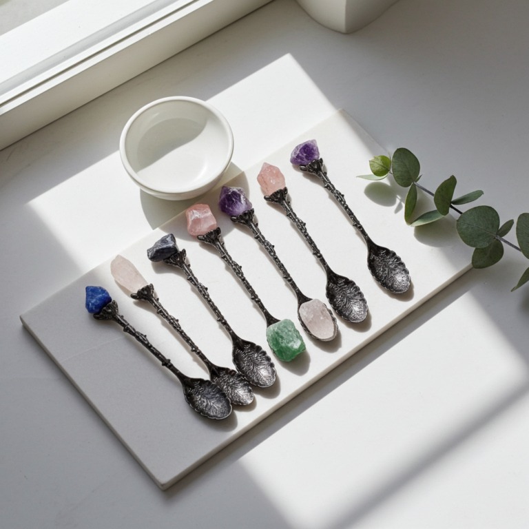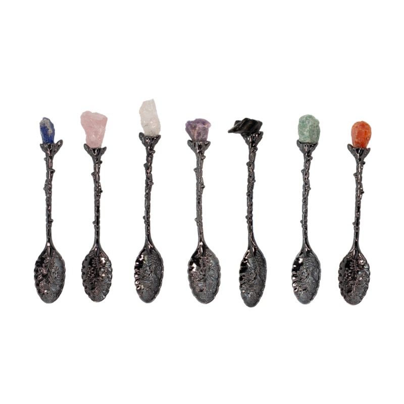 Verwandle deinen Altar, deine Teezeremonie oder deine Wohnräume in einen Ort voller Magie und Energie! Unsere Kristalllöffel mit Edelsteinen sind kunstvolle Dekorationsstücke, die Schönheit und spirituelle Kraft vereinen. Jeder Löffel ist mit einem echten Edelstein verziert, der seine einzigartige Schwingung in dein Zuhause bringt.