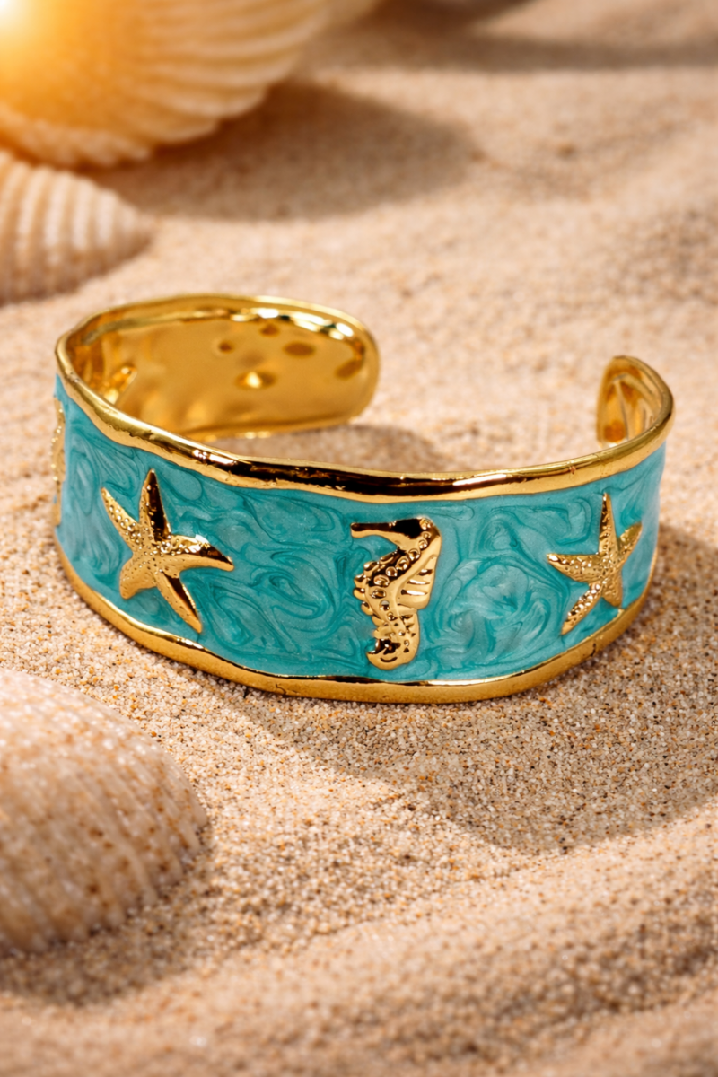 304 Edelstah, 18k vergoldet, Emaille, Manschette Armband
