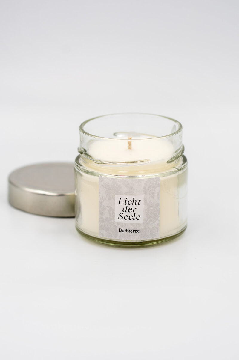 Duftkerze im Glas, Füllung ca. 6 cm hoch, Glas ca. 7 cm hoch, Durchmesser ca. 7,2 cm, Brenndauer ca. 20 Stunden
