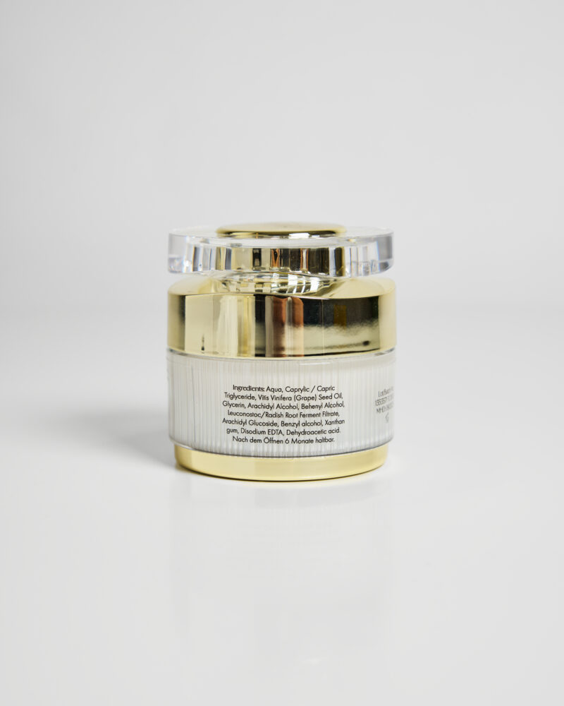 Aqua, Capryl-/Capric-Triglycerid, Vitis Vinifera (Trauben)-Samenöl, Glycerin, Arachidylalkohol, Behenylalkohol, Leuconostoc/Rettichwurzel-Fermentfiltrat, Arachidylglucosid, Benzylalkohol, Xanthangummi, Dinatrium-EDTA, Dehydroessigsäure 50 ml
