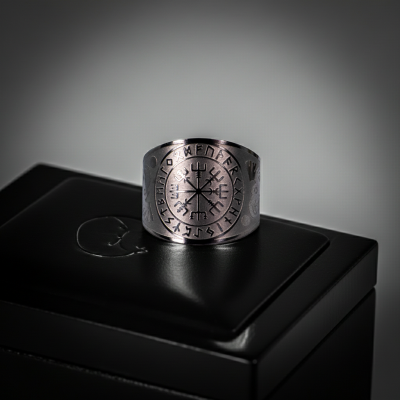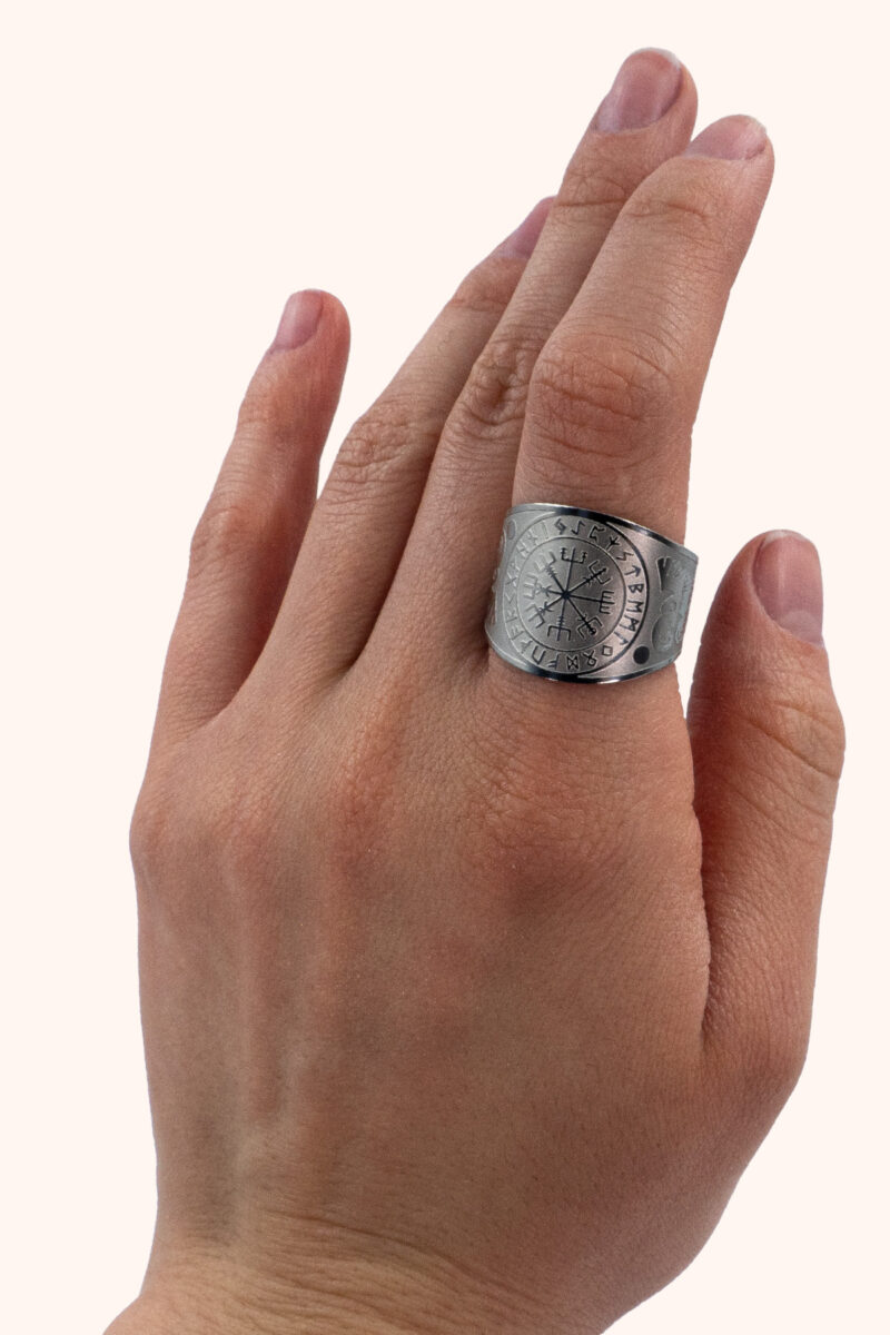 Dieser ausdrucksstarke Ring aus Edelstahl in edlem Silberton steht für Reinheit, Intuition und geistige Klarheit. Der eingravierte Kompass erinnert dich täglich daran, dass deine Wahrheit der sicherste Wegweiser ist.