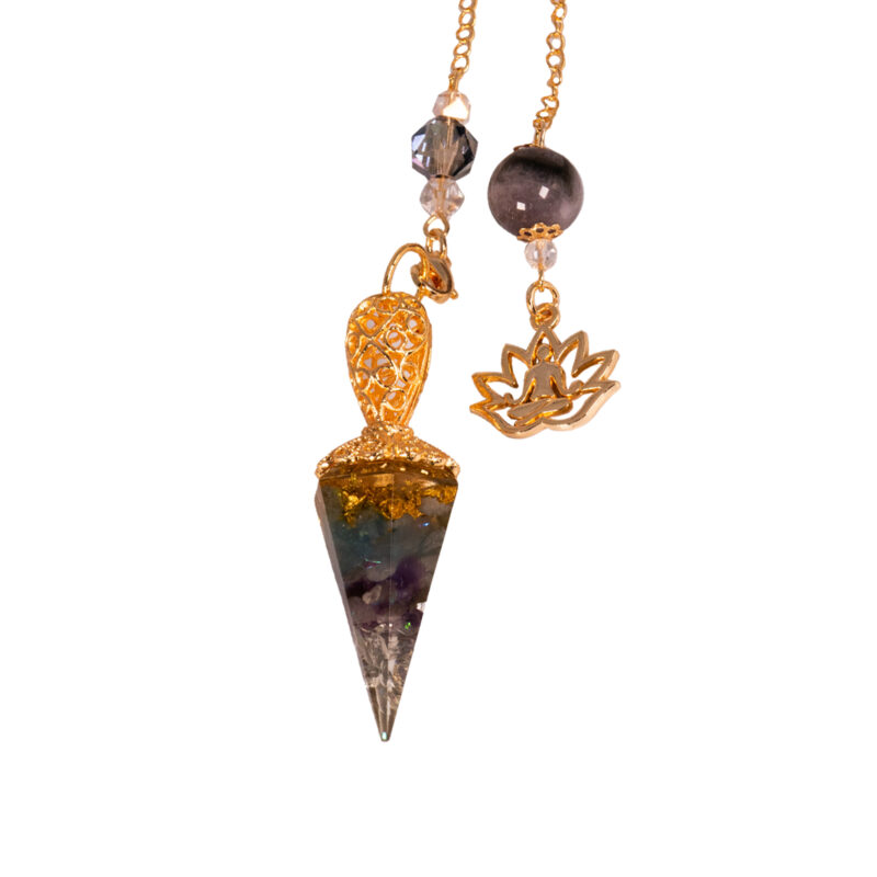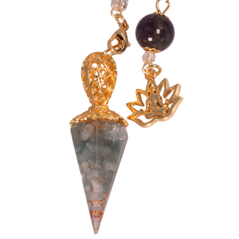 Dieses Pendel trägt nicht nur Schönheit in sich, sondern auch die Frequenzen der Steine, die tief in seiner Spitze eingeschlossen sind. Jede Variante schwingt in ihrer eigenen Energie und öffnet Dir unterschiedliche Tore auf Deinem spirituellen Weg: