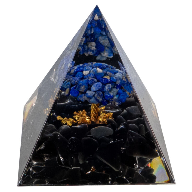 Material: Orgonit-Pyramiden-Harz, mit Lebensbaum aus Messing und natürlichen Lapislazuli-Chips im Inneren