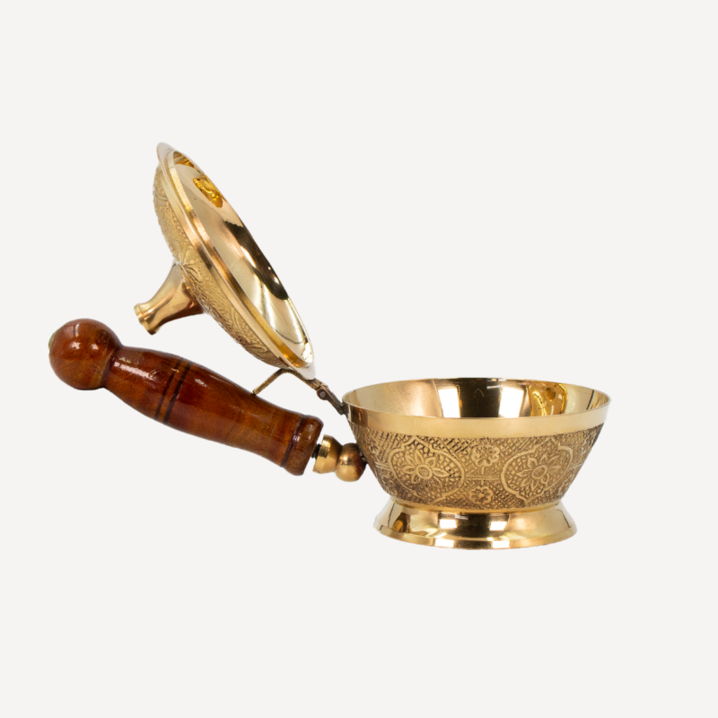 Das Räucherzauber-Gefäß ist mehr als nur ein praktisches Werkzeug; es ist ein Portal zu einer Welt voller Aromen und Energien. Mit seinem eleganten Design und der goldenen Ausstrahlung bringt es nicht nur Schönheit in deinen Raum, sondern auch die Kraft der Räucherung in dein Leben. Egal, ob du deine Meditation vertiefen, einen Raum energetisch reinigen oder einfach nur eine Atmosphäre der Ruhe und Harmonie schaffen möchtest – der Räucherzauber ist dein treuer Begleiter. Fülle es mit deinen Lieblingsräucherstoffen und erlebe, wie der aufsteigende Rauch deine Intentionen trägt und deine Wünsche in die universelle Energie sendet.