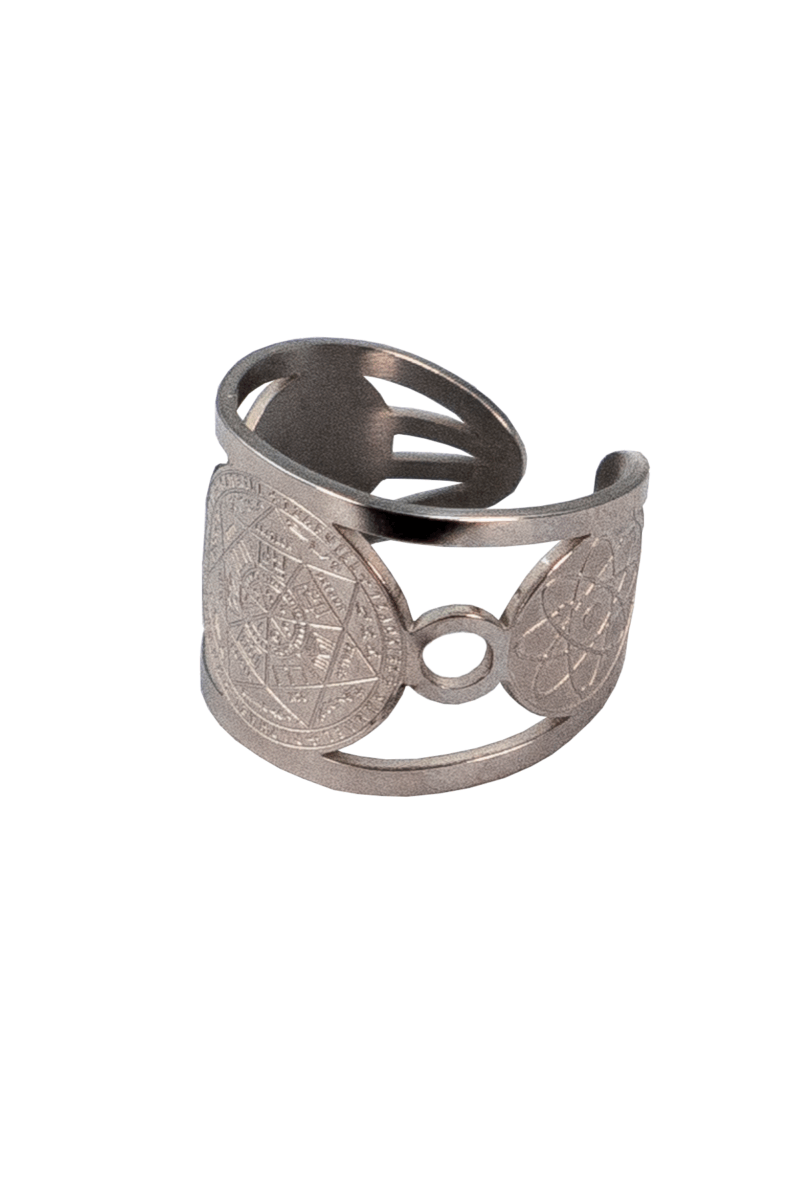 Dieser kraftvolle Ring trägt das heilige Siegel der 7 Erzengel – Michael, Gabriel, Raphael, Haniel, Tzafqiel, Zadkiel und Samael. Jeder Erzengel verkörpert eine kosmische Frequenz, die Dich in Deinem Alltag begleitet, stärkt und schützt.