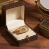 Der Opal in sanftem Weiß erinnert an die stille Strahlkraft des Vollmondes, der die Nacht erhellt. Sein Schimmer verändert sich im Licht, mal geheimnisvoll schillernd, mal zart und rein. Umgeben vom goldenen Strahlen-Design entfaltet er seine ganze Eleganz und zeitlose Schönheit.