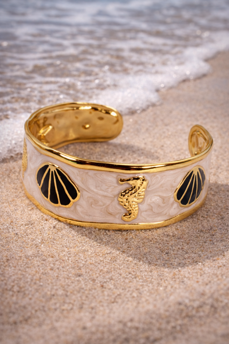 304 Edelstah, 18k vergoldet, Emaille, Manschette Armband