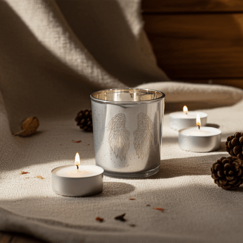 Entzünde ein Teelicht, lass dich von seinem warmen Schimmer umhüllen und spüre, wie Ruhe, Harmonie und Schutz in dein Zuhause einziehen.