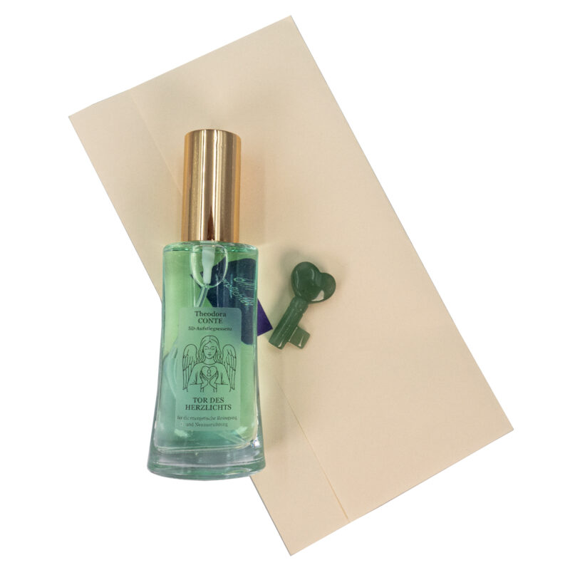 Im Set enthalten: Aventurin-Herzschlüssel, 5D-Aufstiegsessenz „Tor des Herzlichts“, 1 weiße Kerze, 1 Channeling und 1Ritual