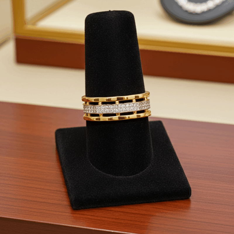 Dieser edle Manschettenring – gefertigt aus Messing, vergoldet mit 18 Karat und verziert mit funkelnden Zirkoniasteinen – trägt den Namen „Sonnenpfad“, weil er das Licht des inneren Aufstiegs in sich trägt. Er symbolisiert den Weg der Seele zurück in die goldene Strahlkraft ihrer göttlichen Herkunft.