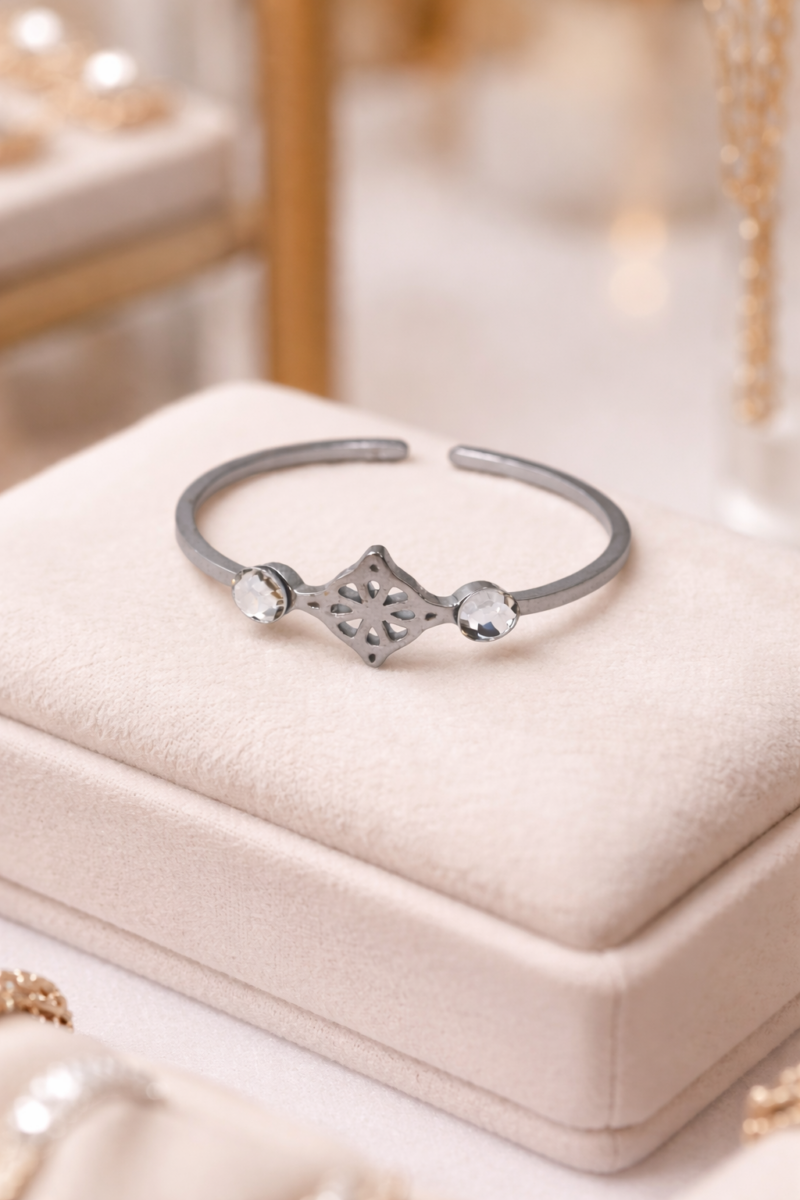 Silber trägt eine feine, lichtvolle Frequenz. Es unterstützt dich dabei, äußere Einflüsse loszulassen und wieder bei dir selbst anzukommen. Die heilige Geometrie dieses Rings wirkt wie ein stiller Mittelpunkt, der dein Energiefeld beruhigt und stabilisiert.